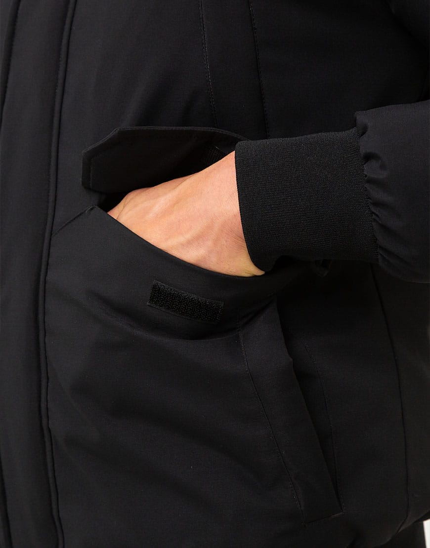Constructed from 100% polyester shell and fill. Features include a removable hood extension with micro fibre lining, snap pocket closure and side entry pockets. Ribbed cuffs and waistband for flexibility. Finished with Siren branding to the sleeve.