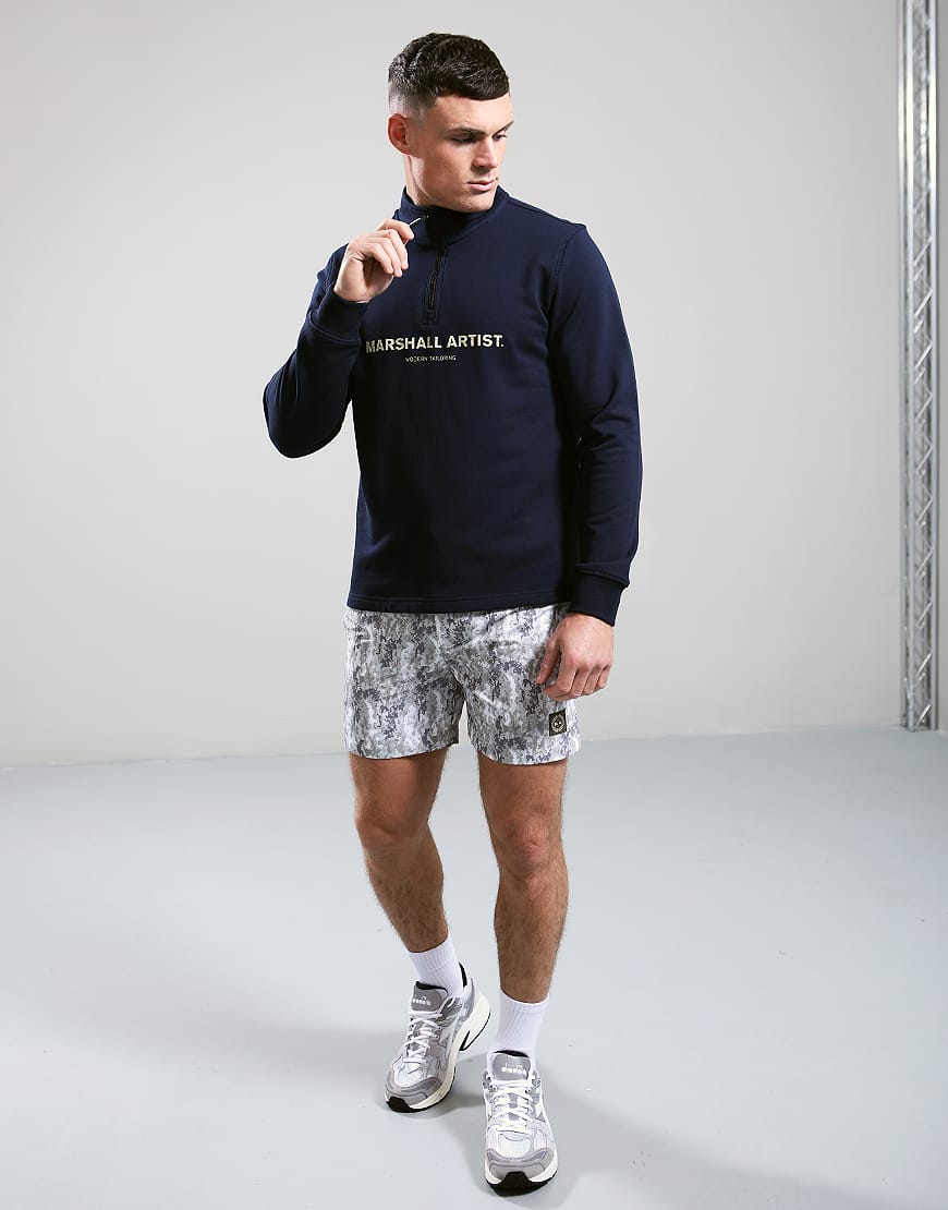 a contrast quarter zip fastening at the funnel neck, new for the season we have 3D woven zip pullers. Ribbed cuffs and a open hem with cover stitch detail on all seams. Finished with a high build, eroded textured MA branding to chest. Regular fit.