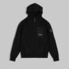 This 1/4 zip hood is constructed from a 80% Cotton / 20% Polyester blend. Features a contrast Krinkle nylon pocket to the left chest with Marshall Artist printed logo, ribbed cuffs and hem. Finished with flatlock stitching at seams. Regular fit.