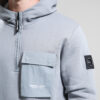 This 1/4 zip hood is constructed from a 80% Cotton / 20% Polyester blend. Features a contrast Krinkle nylon pocket to the left chest with Marshall Artist printed logo, ribbed cuffs and hem. Finished with flatlock stitching at seams. Regular fit.