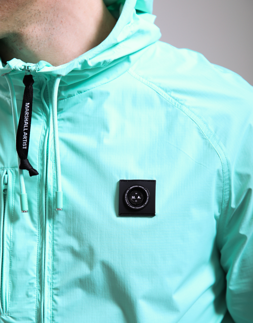 Designed for everyday versatility, the Fairfax Jacket combines lightweight nylon ripstop construction with functional detailing for modern wear. Features a silver full zip fastening, zip chest pocket, and side-entry pockets with press-stud closure. Cotton drawcords with matching rubber tips and woven zip pullers offer precision and durability. Elasticated cuffs and hem provide an adjustable fit, while micro Siren branding to the chest and a printed Marshall Artist wordmark on the hood complete the technical design.