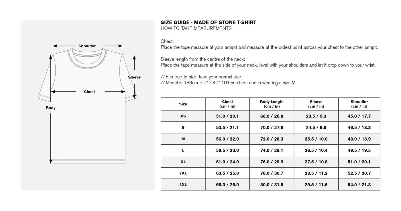 Made from a 100% cotton jersey, features include, a raised 1989 in-filled print to the chest with Marshall Artist “Made of Stone” text underneath.