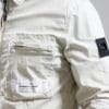 This overshirt is constructed from a unlined washed parachute poplin that features a silver full zip fastening, zip chest pockets and new for the season we have 3D woven zip pullers. Side entry pockets with press stud closure and elasticed cuffs and hem for an adjustable fit. Finished with a hand printed corroded stripe to the pocket and Siren to left arm. Regular fit.