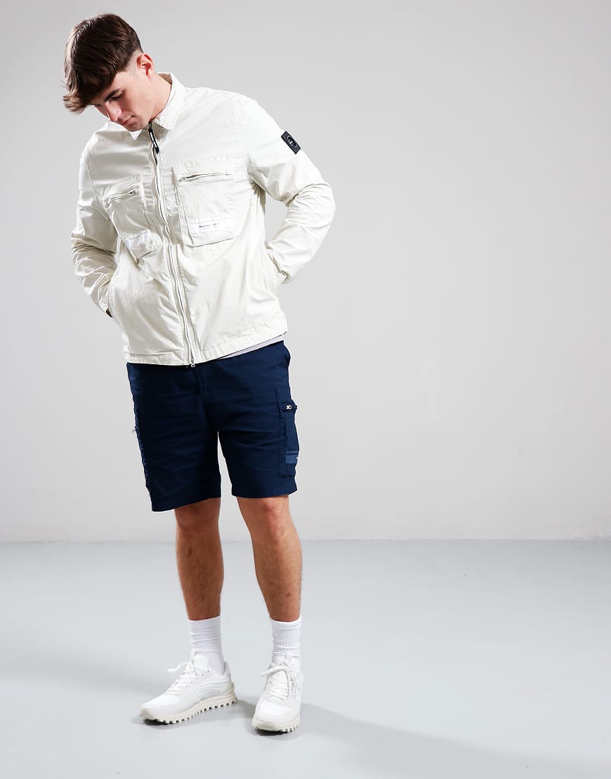This overshirt is constructed from a unlined washed parachute poplin that features a silver full zip fastening, zip chest pockets and new for the season we have 3D woven zip pullers. Side entry pockets with press stud closure and elasticed cuffs and hem for an adjustable fit. Finished with a hand printed corroded stripe to the pocket and Siren to left arm. Regular fit.