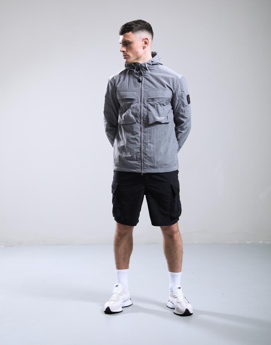 Designed for everyday versatility, the Sicuro Hooded Overshirt combines lightweight nylon ripstop construction with functional detailing for modern wear. Features a full zip fastening, bellow chest pockets with over-laid herringbone tape and side-entry pockets. Contrast piping at the hood collar and woven zip pullers offer precision and durability. Press-stud fastening at cuffs and bungee hem provide an adjustable fit, while