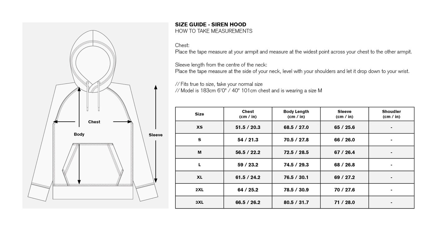 Ribbed cuff and hem for a adjustable fit, finished with Siren badge branding at the left arm.