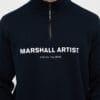 Constructed from a 80% Cotton / 20% Polyester blend. Features half zip closure, ribbed cuff and sleeves. Rubber branded zip puller and side entry pockets. Finished with flatlock stitching at seams and large Mar- shall Artist print at CF chest.