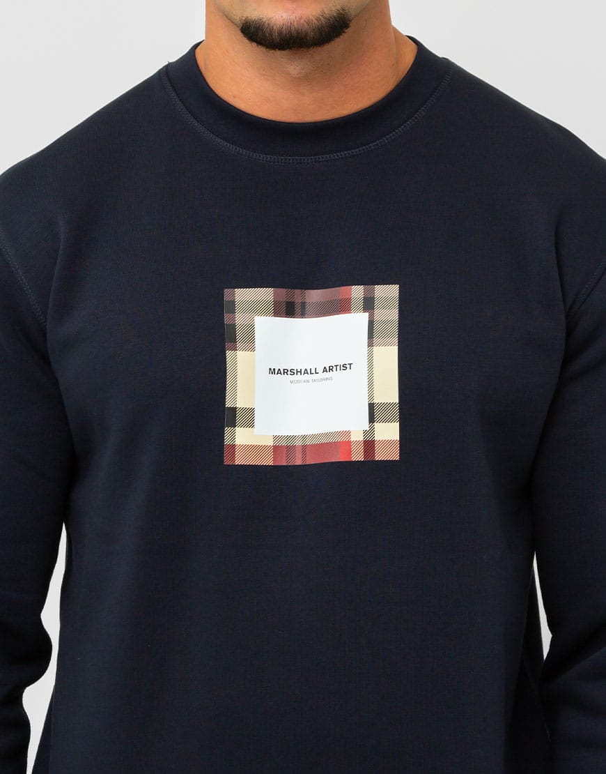 Constructed from a 80% Cotton / 20% Polyester blend. Features ribbed cuff and hem with coverstiched seams throughout. Finished with our MA House Check box logo graphic to centre chest.