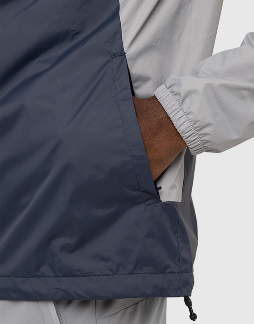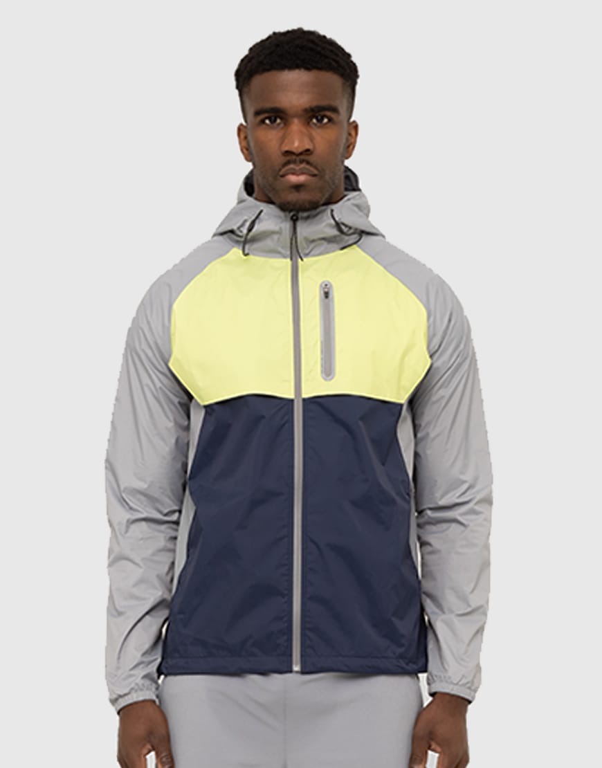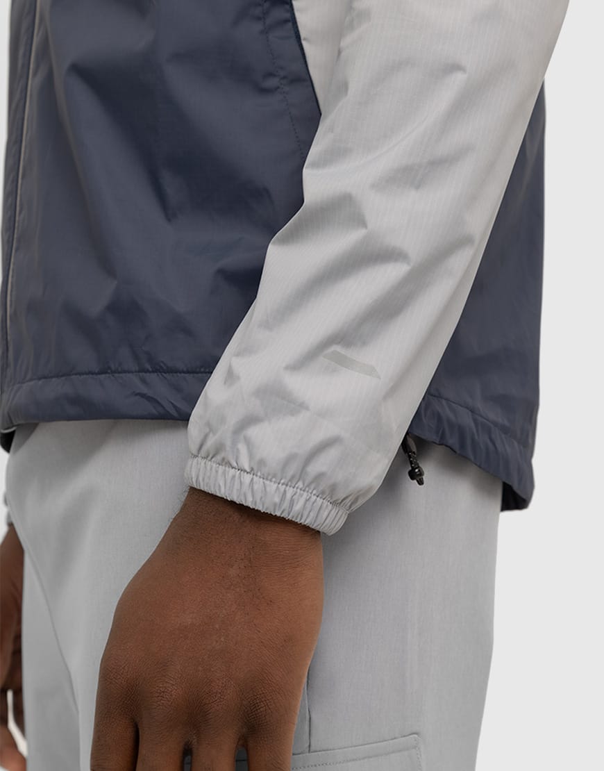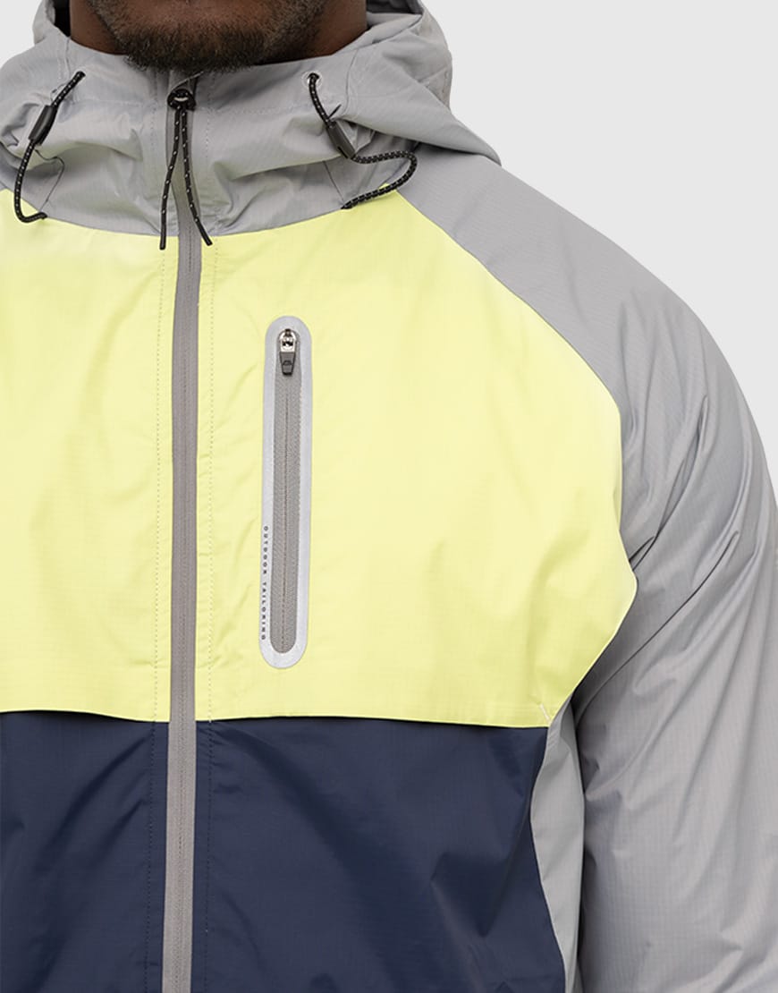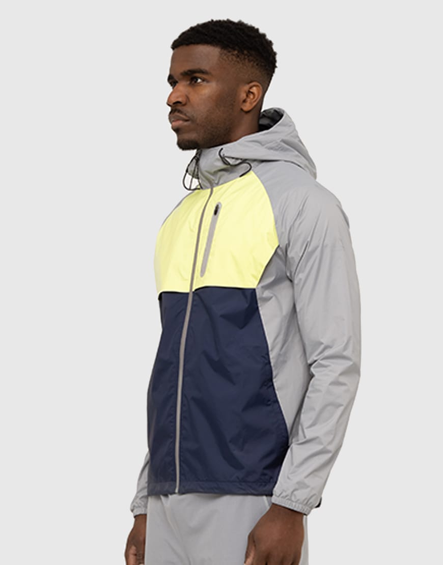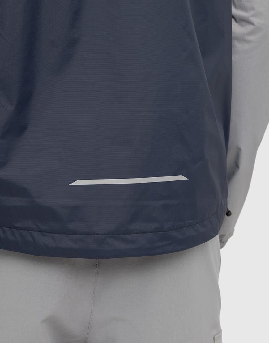 Windbreaker constructed from a lightweight nylon ripstop with dynamic panelling for articulated movement. Features concealed full zip fastening with branded Outdoor Tailoring puller, chest zip pocket, concealed angled zip side pockets with technical zip pullers and adjustable bungee cord at hem and hood. Reflective prints to concealed zip back pocket, hood and sleeve. Finished with our Outdoor Tailoring logo in relfective print to the left arm. Regular fit.