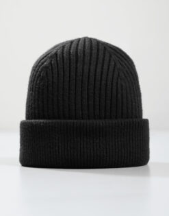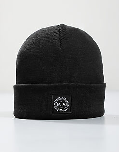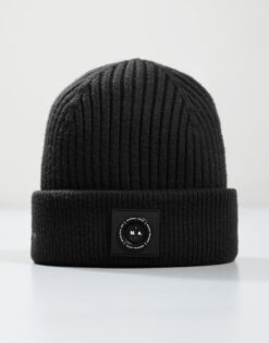 Woven Badge Knitted Beanie // Black