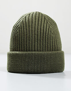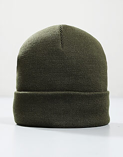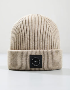 Woven Badge Knitted Beanie // Khaki