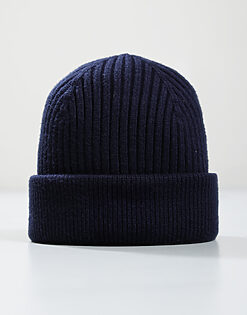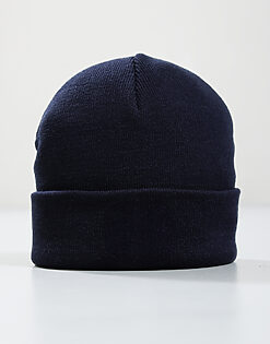 Woven Badge Knitted Beanie // Navy