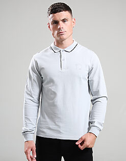 Siren Long Sleeve Tipped Polo Shirt // Ghost Grey