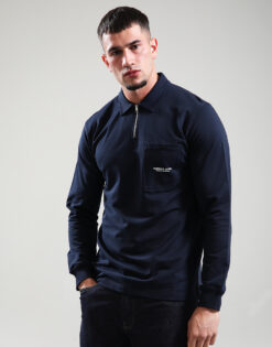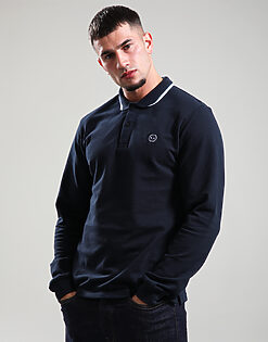 Siren Long Sleeve Tipped Polo Shirt // Navy